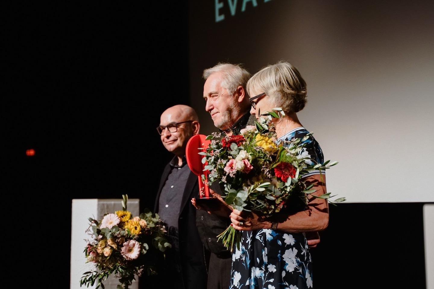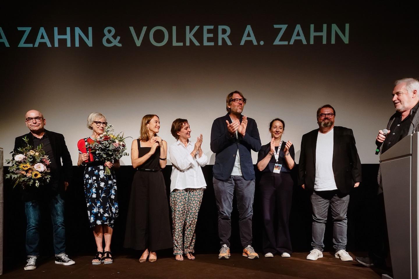 Auf den Fotos: Preisträger Eva Zahn und Volker A. Zahn mit Festivalleiter Michael Kötz. Unten: Das Team des Kiel-TATORTS „Borowski und die große Wut“ mit der ausgezeichneten Regisseurin Friederike Jehn, Kameramann Stan Mende, Editorin Isabel Meier, Casterin Marion Haack und Nordfilm-Dramaturg Alfred Holighaus.
